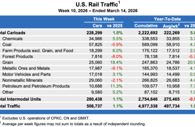 By Dario Belenfante March 18, 2026 Industry News & Updates Latest week U.S. rail shipments flat Freight on U.S. lines saw minimal increases in the Continue...