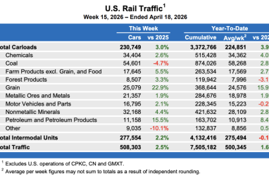 Freight on U.S. railroads totaled 508,303 carloads and intermodal